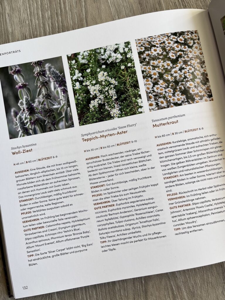 Besinnen wir uns also auf die Ursprünge! Die Pflanzen selbst haben in ihrer natürlichen Umgebung Überlebensstrategien entwickelt, mit Hitze und Trockenheit umzugehen. Mit diesen Einblicken lädt Annette Lepple ein, sich von einem sogenannten Idealbild des Gartens zu verabschieden. Dennoch: Ein Mindestmaß an Pflege ist nötig. Doch beherzigt man einige Ratschläge dieses Buches, heißt es wirklich „genießen statt gießen“. Annette Lepple fasst es perfekt zusammen: „Mein Grundsatz: Regelmäßig ein bisschen tun:“